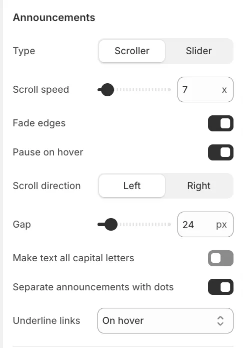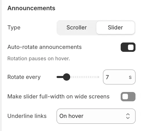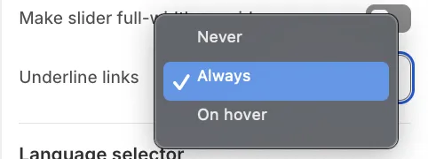 Applies to both Slider and Scroller modes. You can control the visibility of underlines for links embedded in rich text using the Underline links setting: