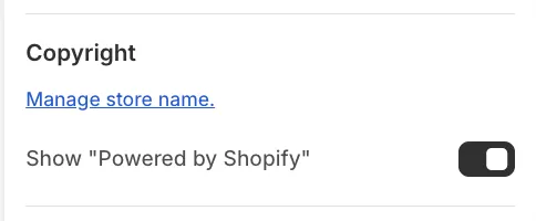 By default, the footer displays a "Powered by Shopify" credit. To remove this: