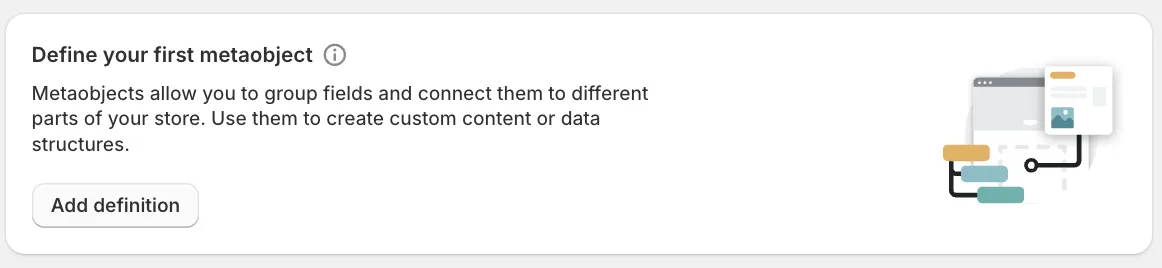 From your Shopify Admin, go to Settings > Custom data (or Metafields and metaobjects).