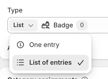 Change One entry to List of entries (This allows a product to have multiple badges).