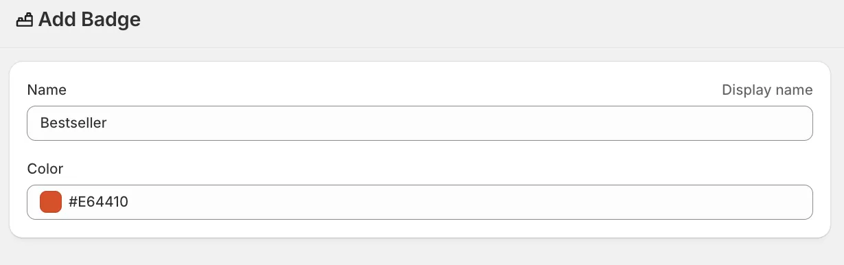 Fill in the Name (e.g., "Bestseller") and pick a Color (e.g., #E64410).