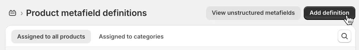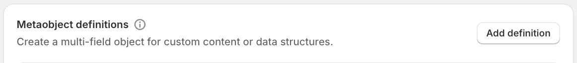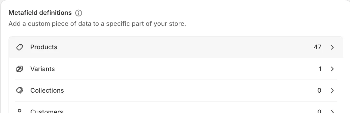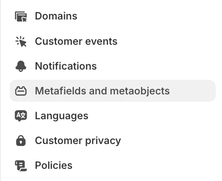 From your Shopify Admin, go to Settings > Custom data (or Metafields and metaobjects).