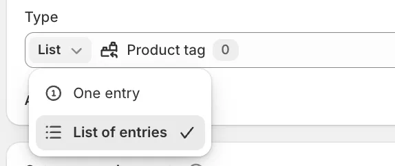 Change One entry to List of entries (This allows a product to have multiple tags).