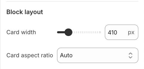 To maintain a clean, uniform look, the dimensions for all Media Cards and Collection Cards are set here, rather than on individual blocks: