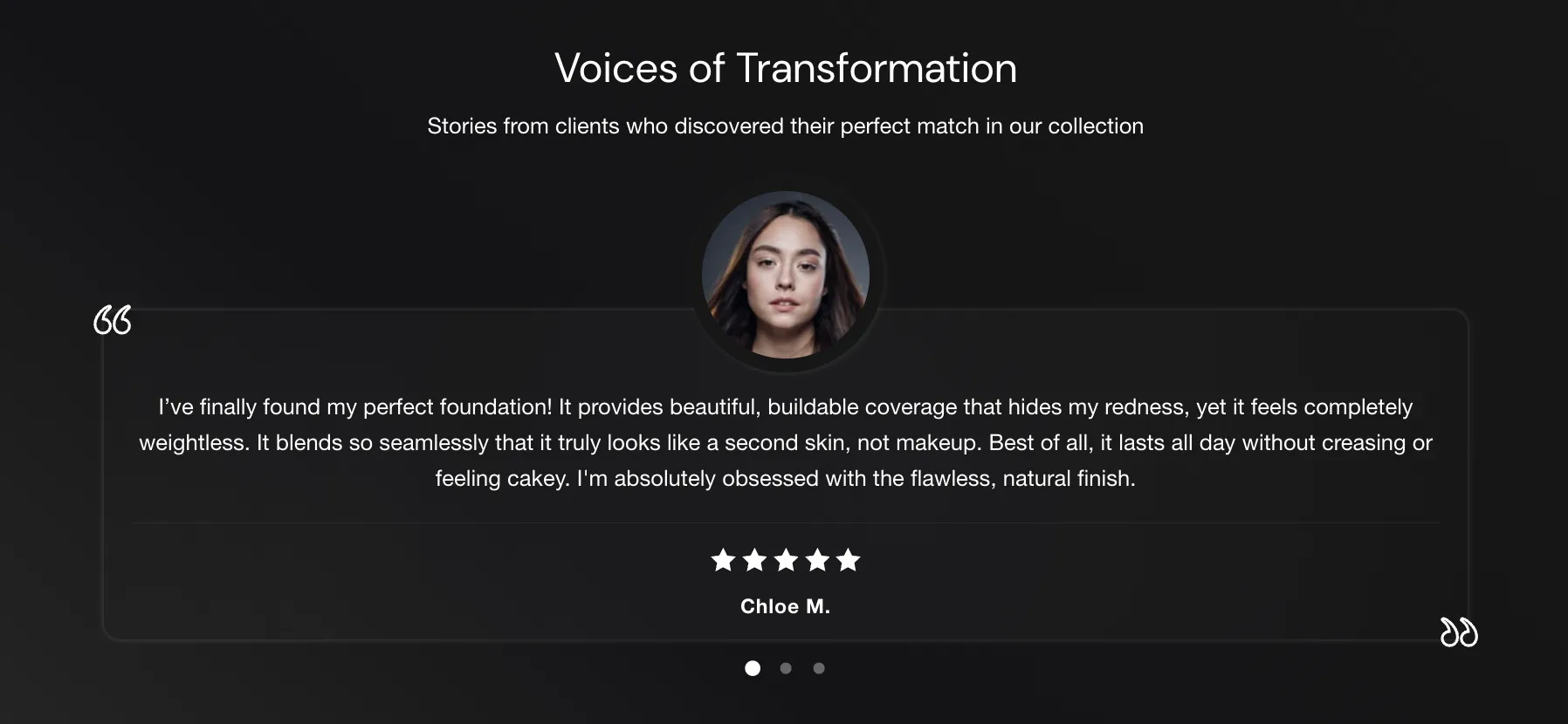 Design: The testimonials appear in a styled box with a subtle radial gradient background to stand out from the rest of the page content.